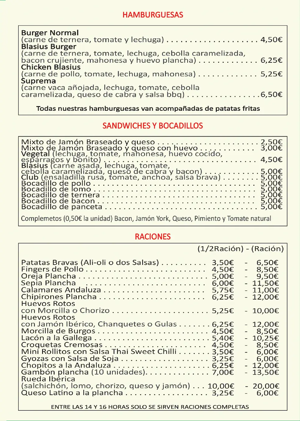 Casa Blasius cada plato cuenta una historia. Una historia de tradición, sabor y cercanía. Nuestra carta está pensada para quienes disfrutan de la buena comida sin prisas, de lo casero, lo auténtico y lo hecho con cariño. Desde los entrantes hasta los postres, todo está preparado con productos frescos y locales, para que cada bocado te haga sentir como en casa.